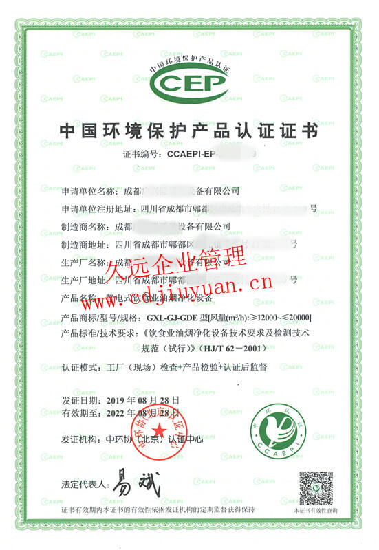中國環(huán)保產(chǎn)品認證證書