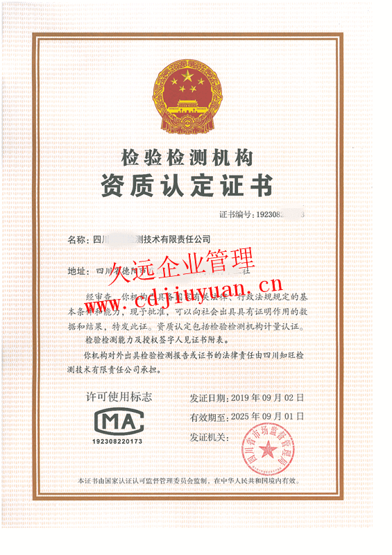 檢驗檢測機構資質(zhì)認定證書(CMA)